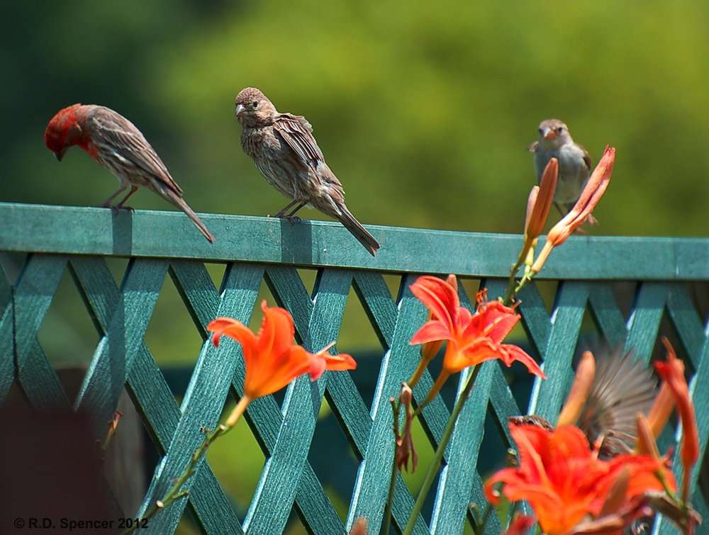 We begin with a Female House Finch, then a whole House Finch Family, followed by the very elusive Killdeer ( very fast moving and seldome sit still for more than a few seconds, even caught one in flight..leaving ).